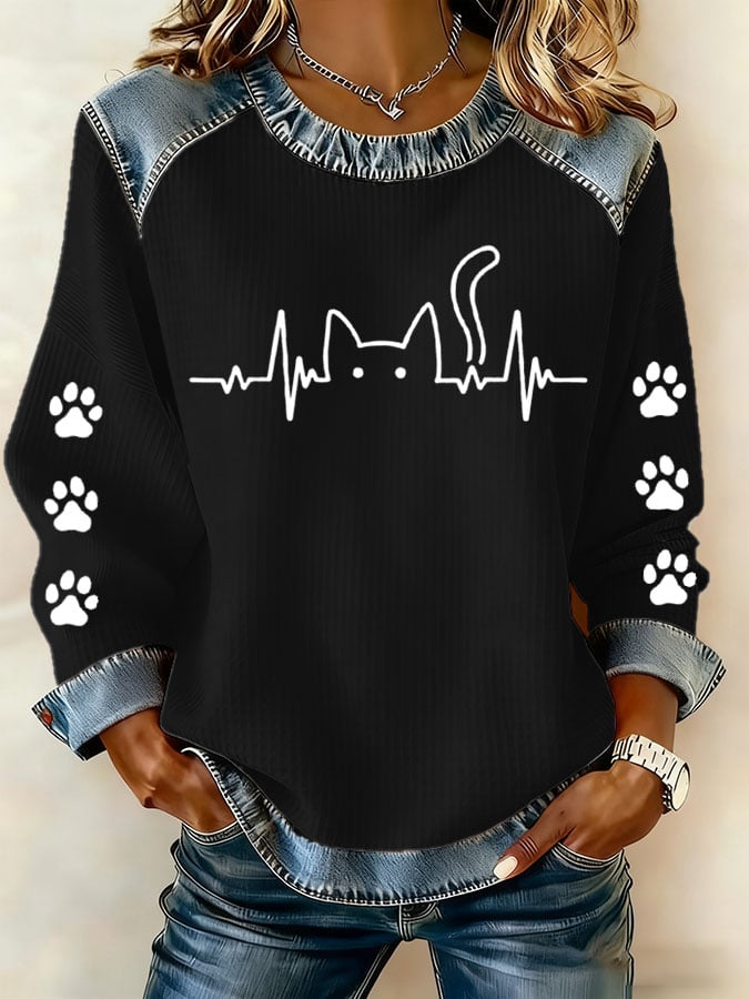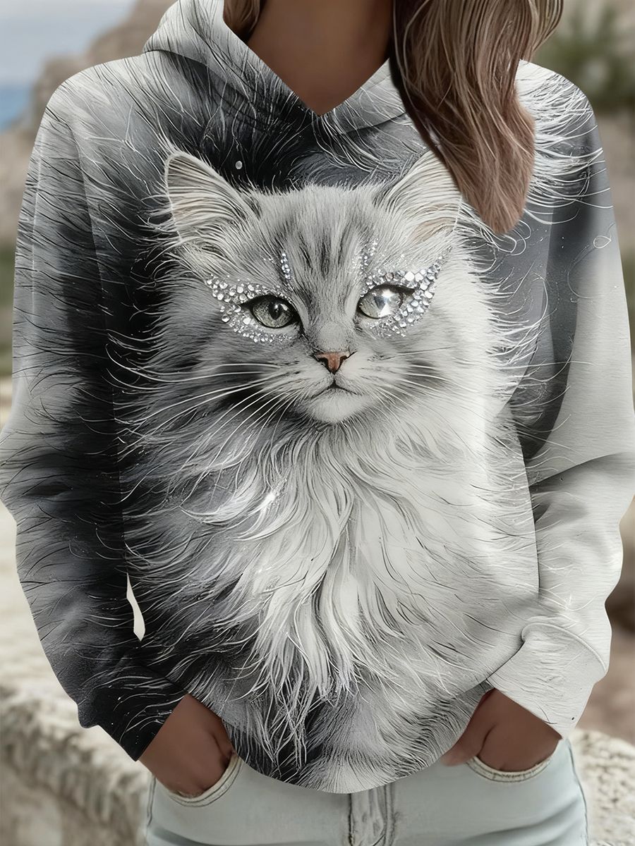 Funny Cats Pattern Art Print Casual Cotton Sweatshirt