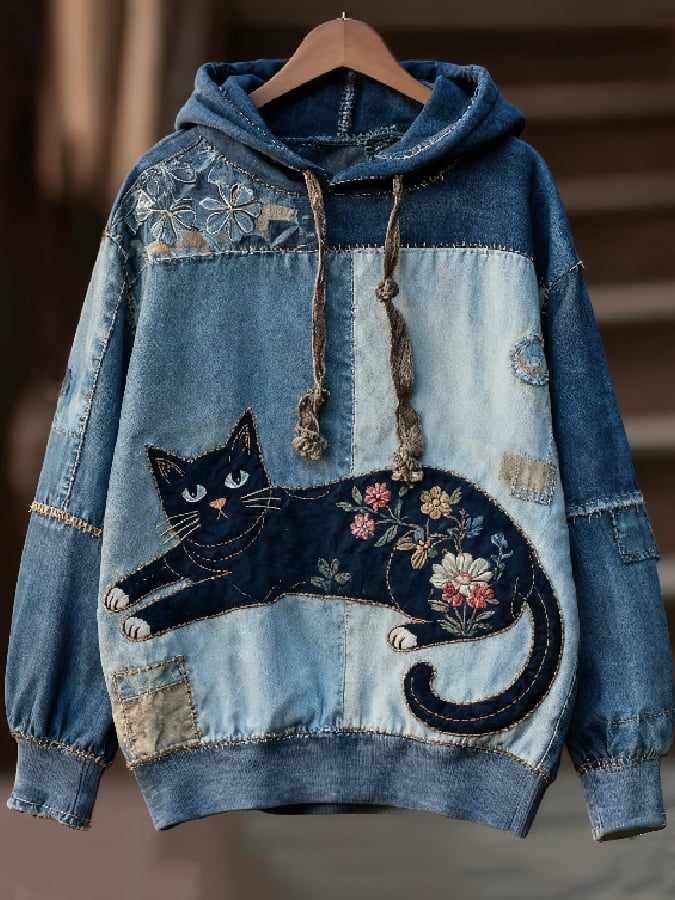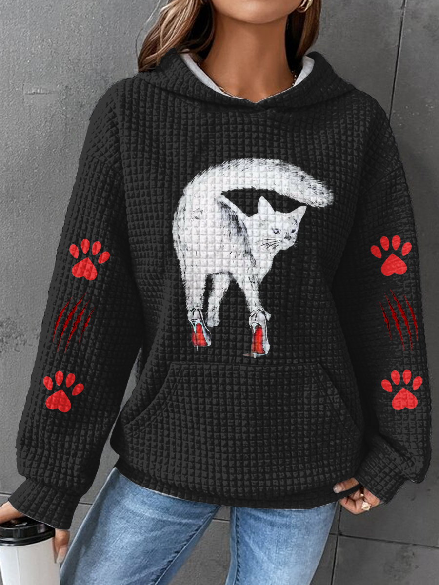 Women's Cat Art Illustration Printed Casual Sweatshirt