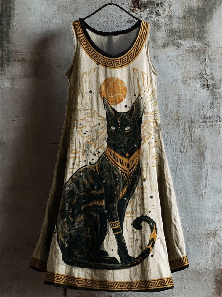Ancient Egyptian Divine Black Cat Linen Tank Dress