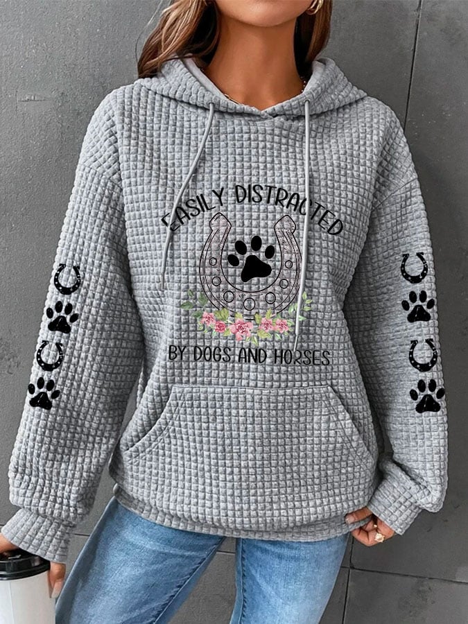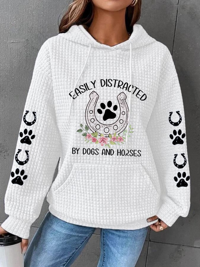 🐴Women's Easily Distracted By Dogs and Horses Dog And Horse Lover Print Waffle Hoodie