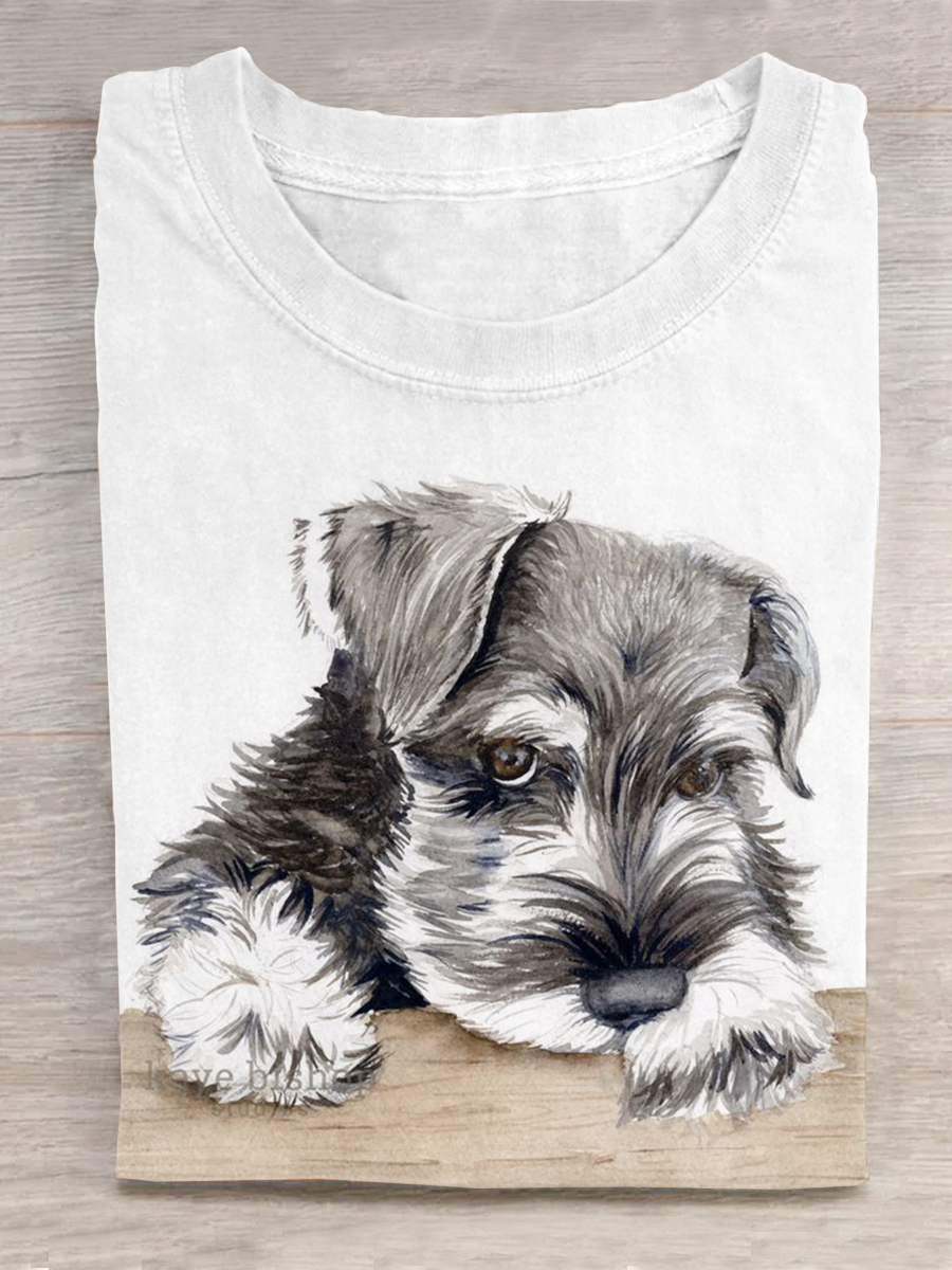 Dog Art Print Round Neck Short Sleeve T-Shirt