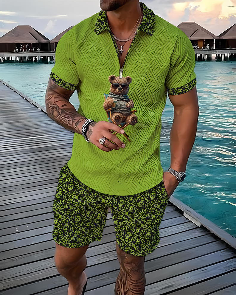 Sunglasses Bear Polo Shirt And Shorts Co-Ord