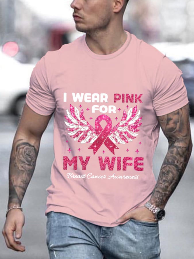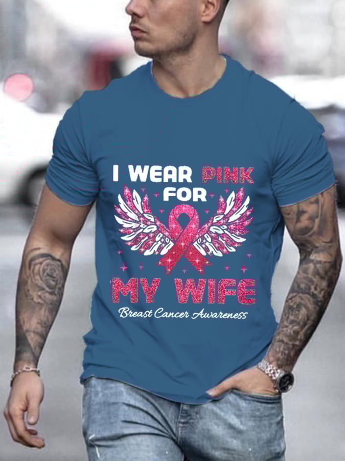 Men'S I Wear Pink For My Wife - Breast Cancer Awareness Print T-Shirt