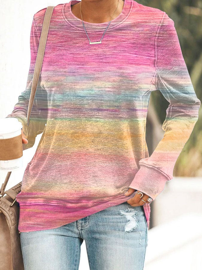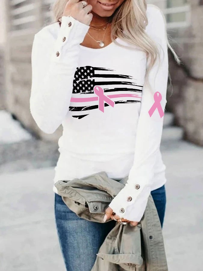 Women's Breast Cancer Awareness Print Long Sleeve Casual T-Shirt