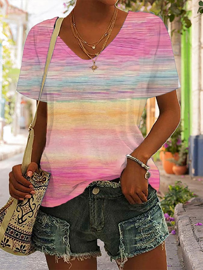 Women's Casual Breast Cancer Awareness Print Short Sleeve T-Shirt