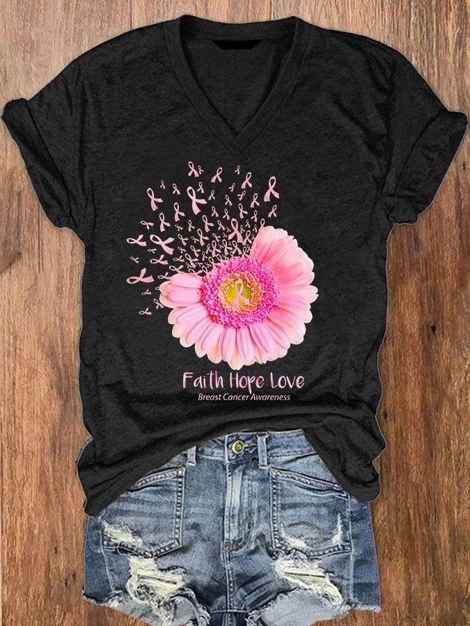 Women's Faith Hope Love Breast Cancer Print Casual T-Shirt