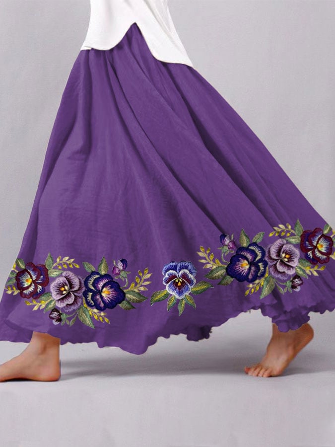 Boho Romantic Floral Embroidery Gradient Women's Linen Loose Shirt