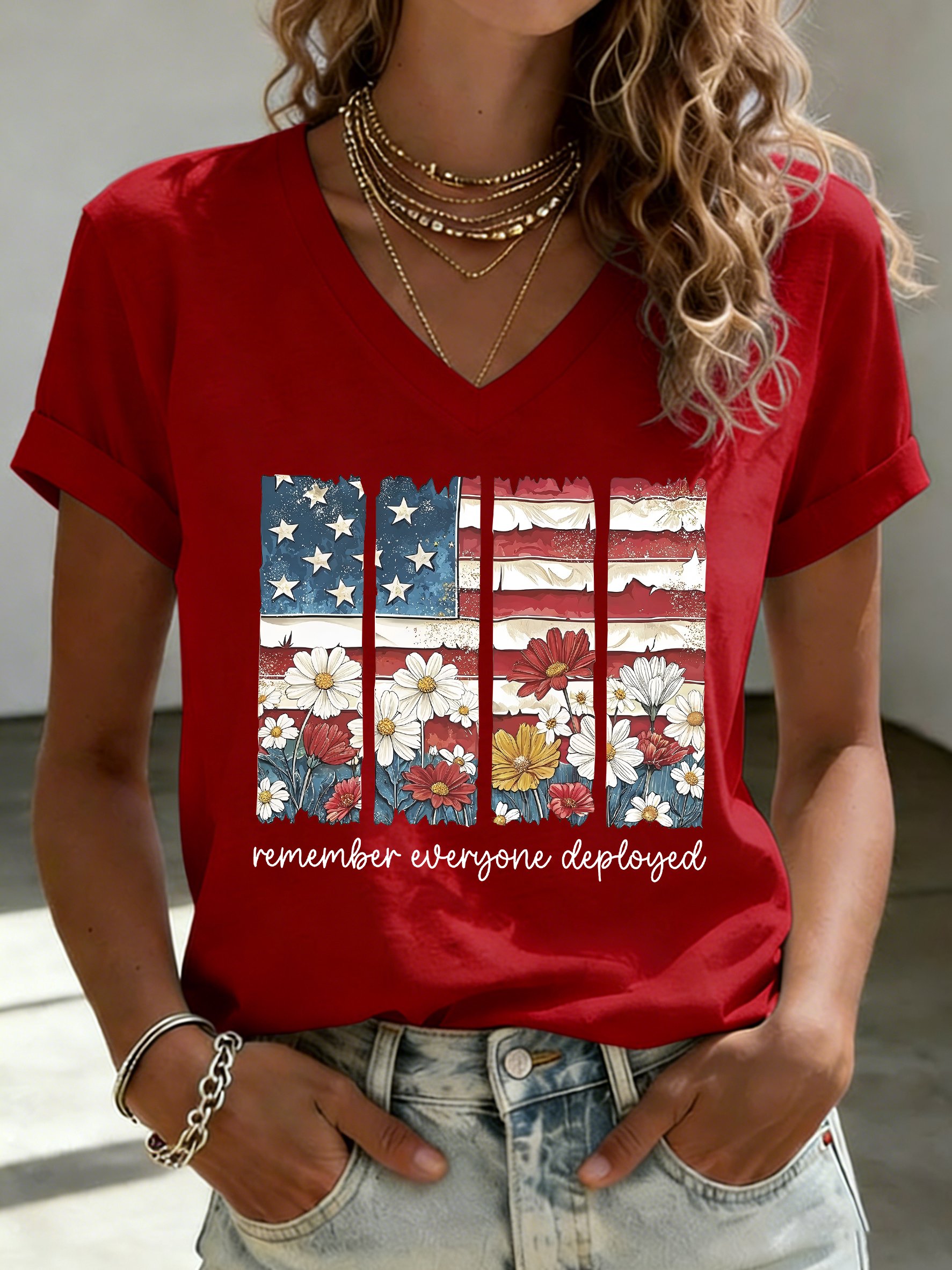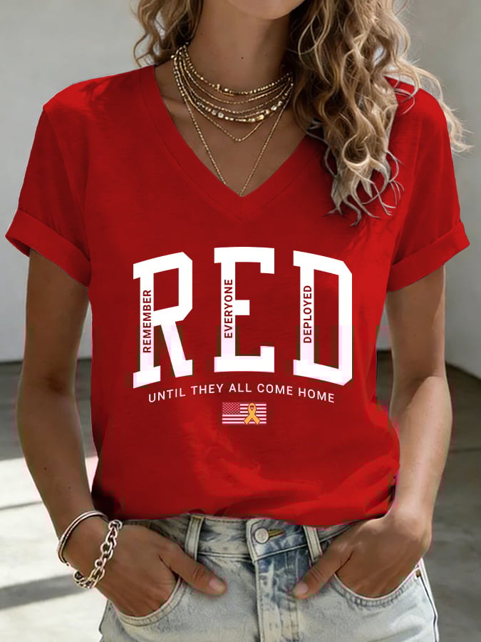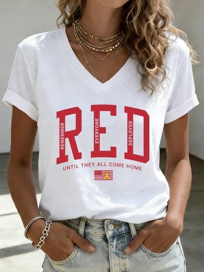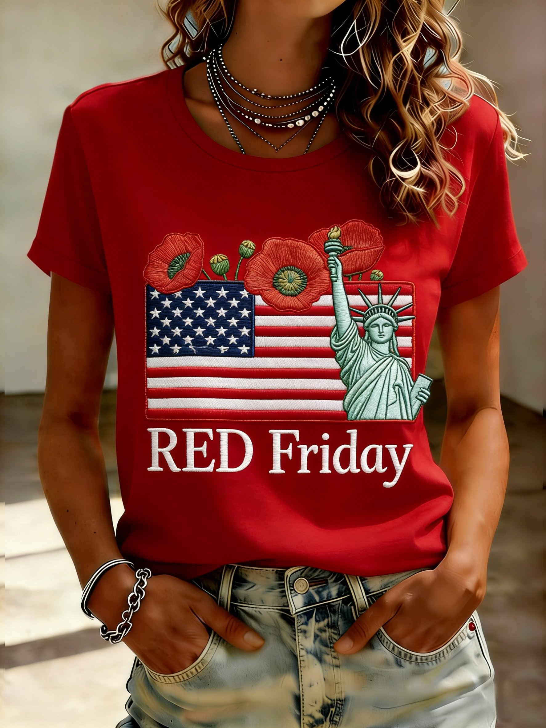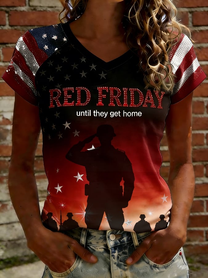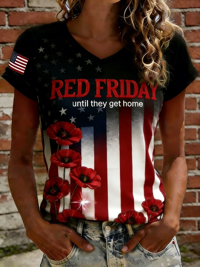 Women's Casual Red Friday Print Short-Sleeve T-Shirt
