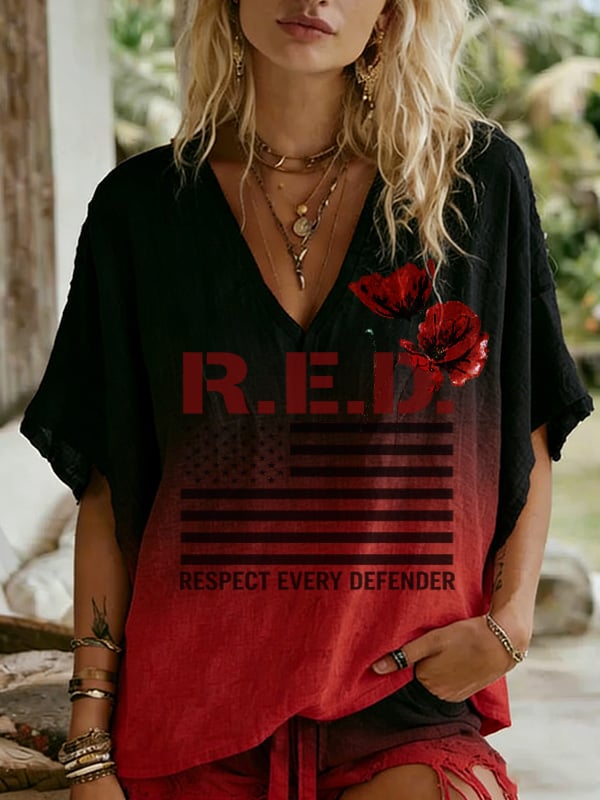 Women's Veteran Red Friday Print Casual Long Sleeve Top