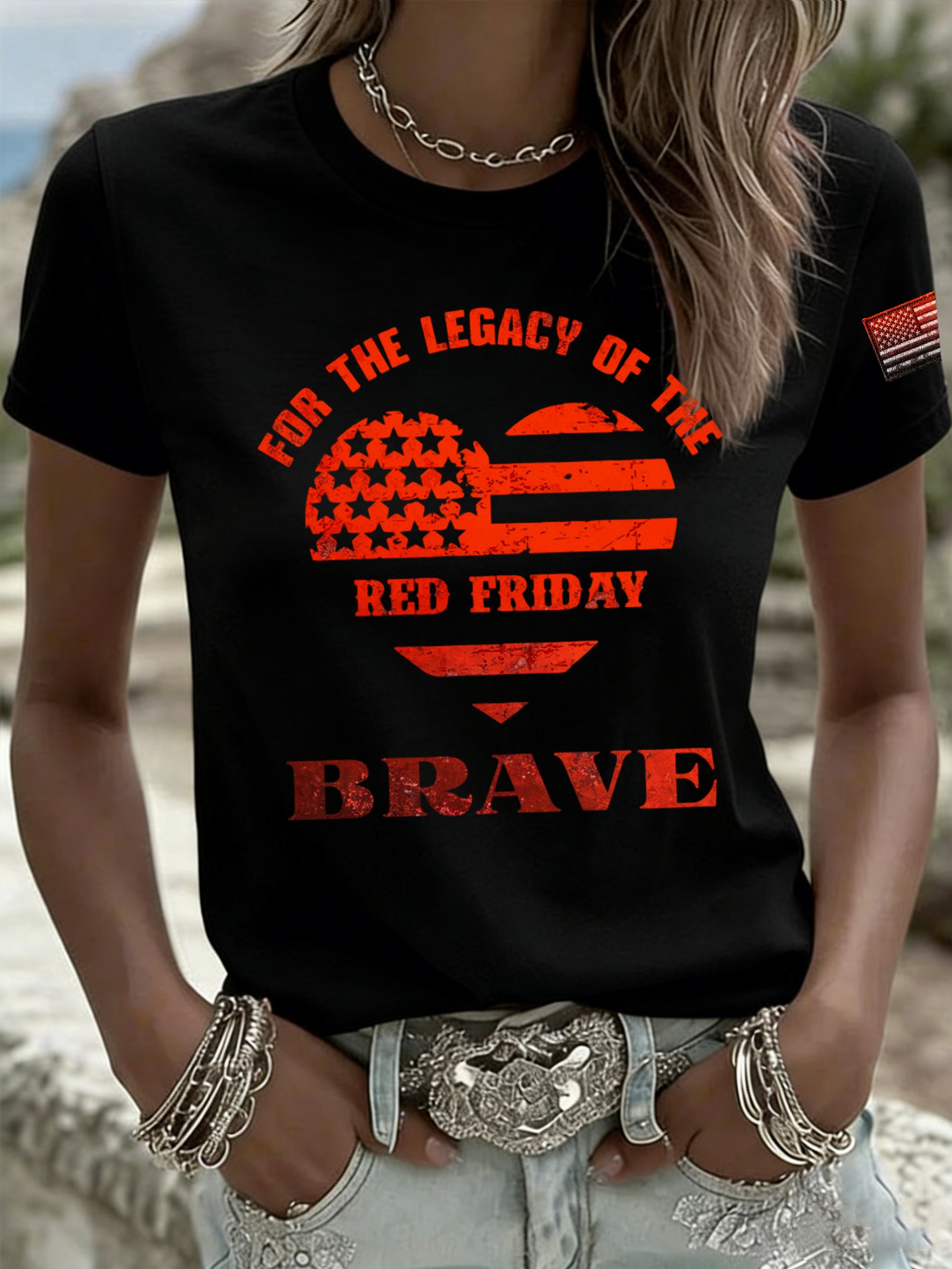 Women's Casual Red Friday Print Short-Sleeve T-Shirt