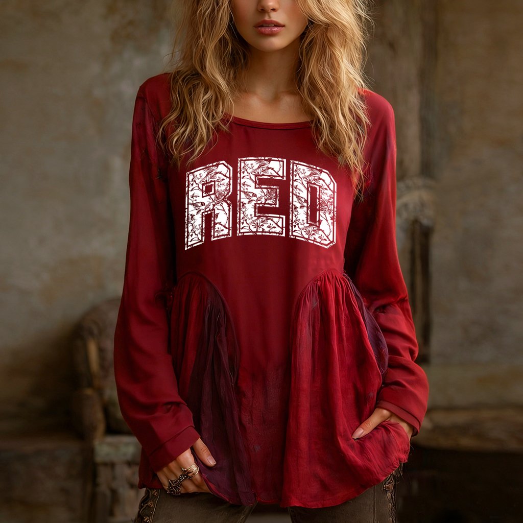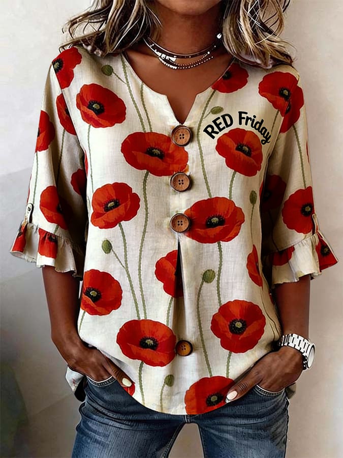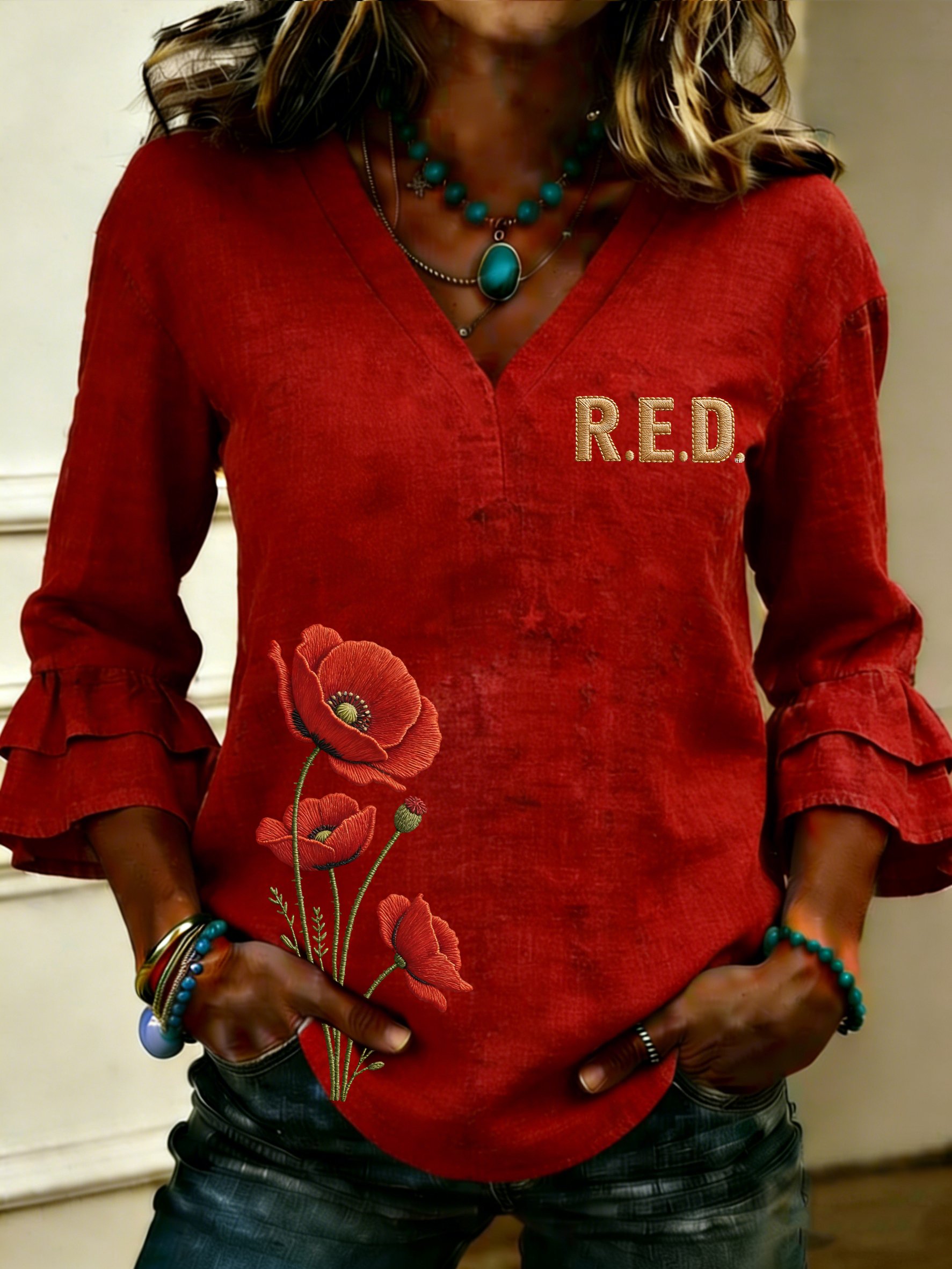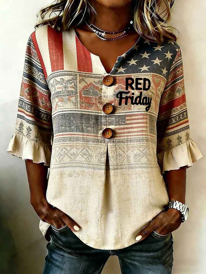 Women's Retro Bohemian "Red Friday" Artistic V-Neck Top