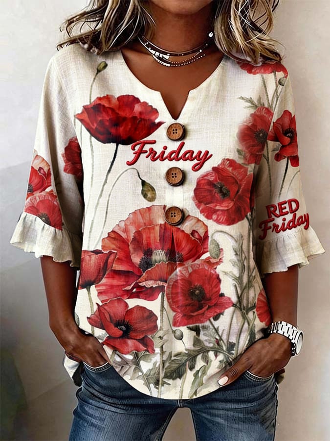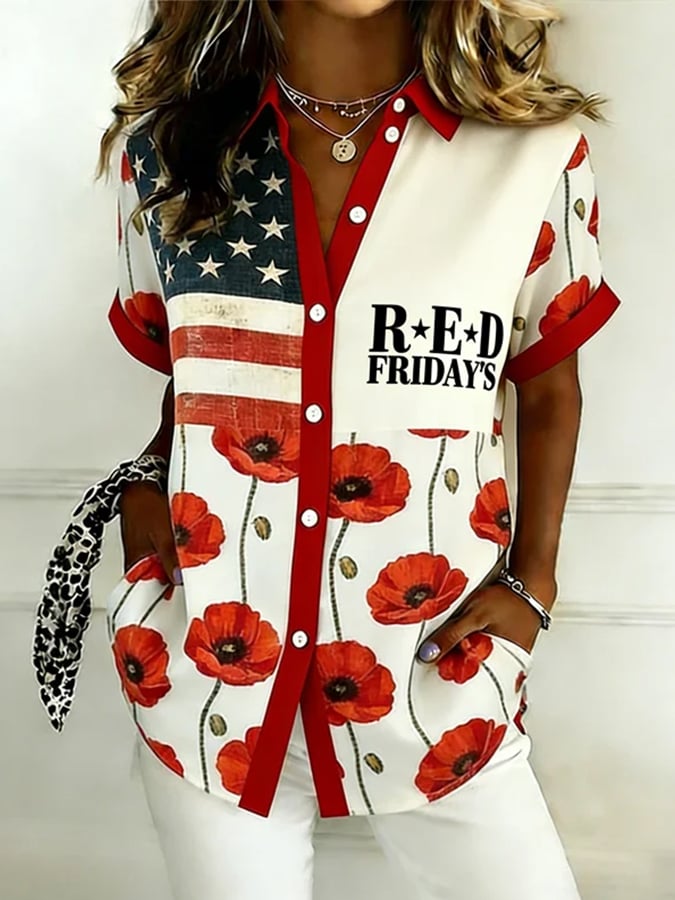 Women's Retro Poppy Red Friday Commemorative Short-Sleeve T-Shirt