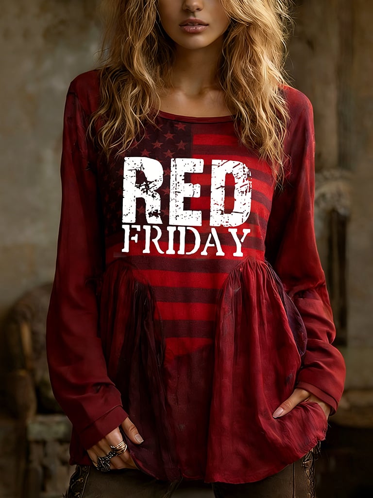Women's Casual Red Friday Print Short-Sleeve T-Shirt