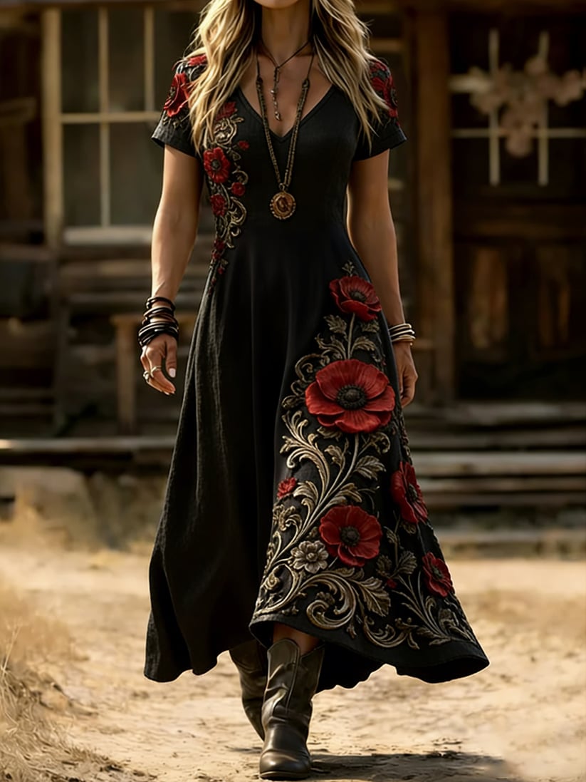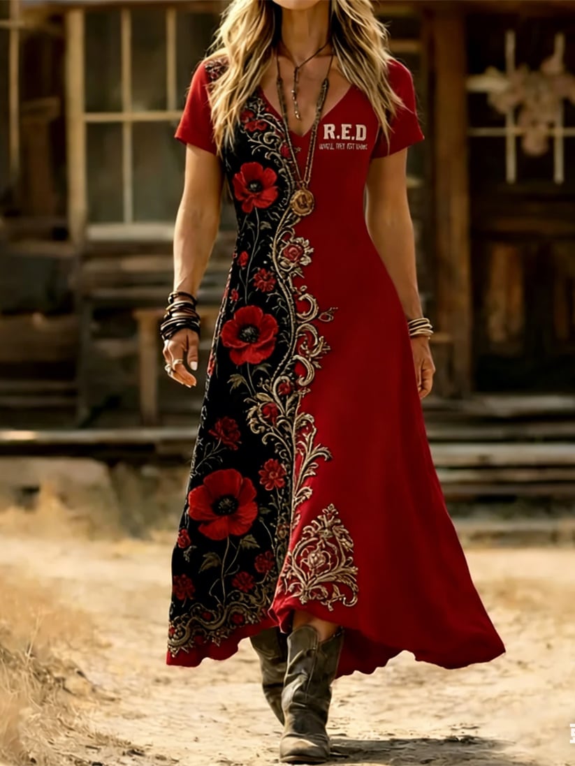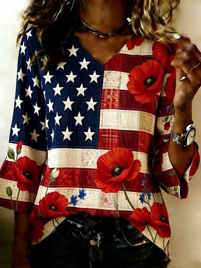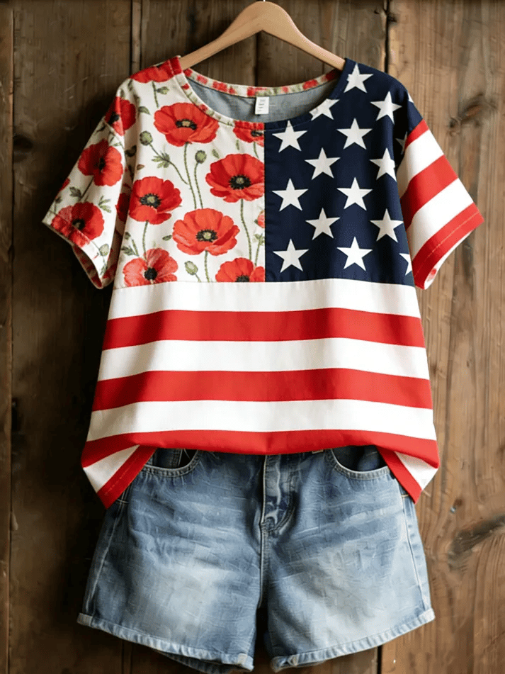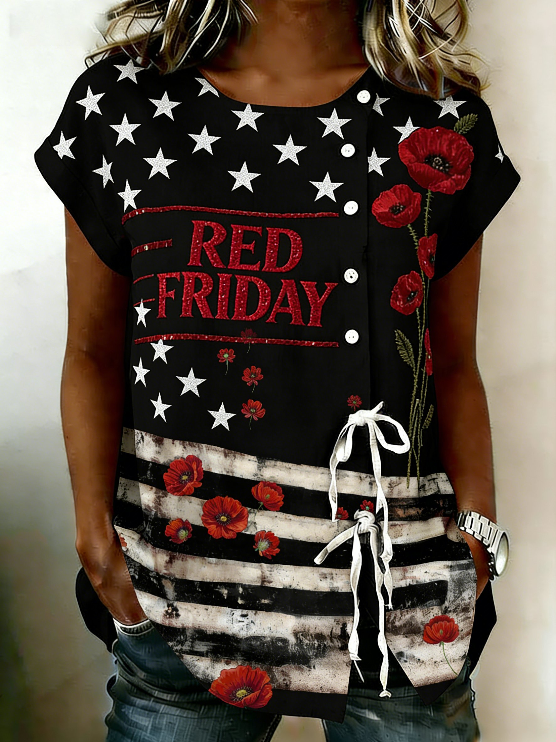 Women's Casual Red Friday Print Short-Sleeve Shirt