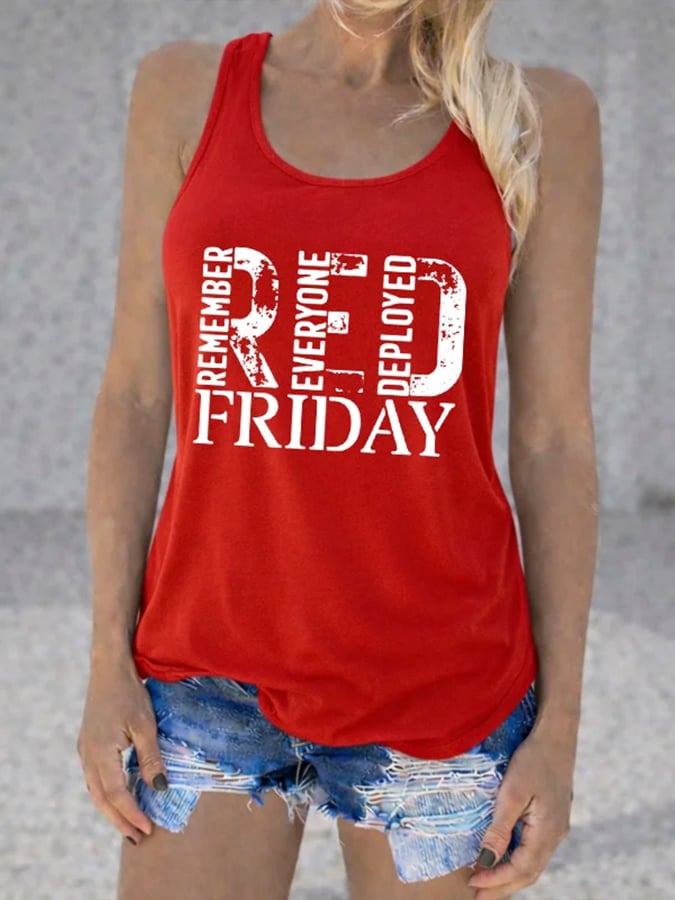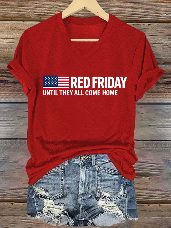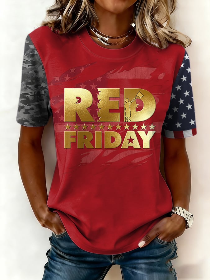 Women's Casual Red Friday Print Short-Sleeve T-Shirt