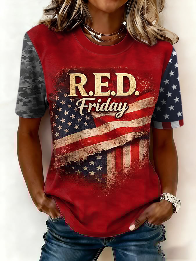 Women's Red Friday Patriotic Round Neck T-Shirt