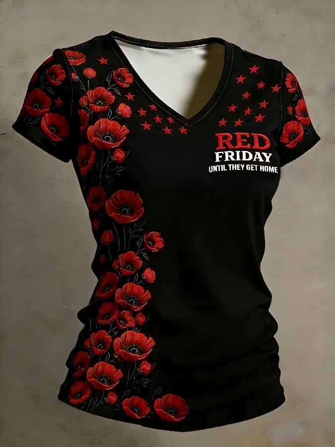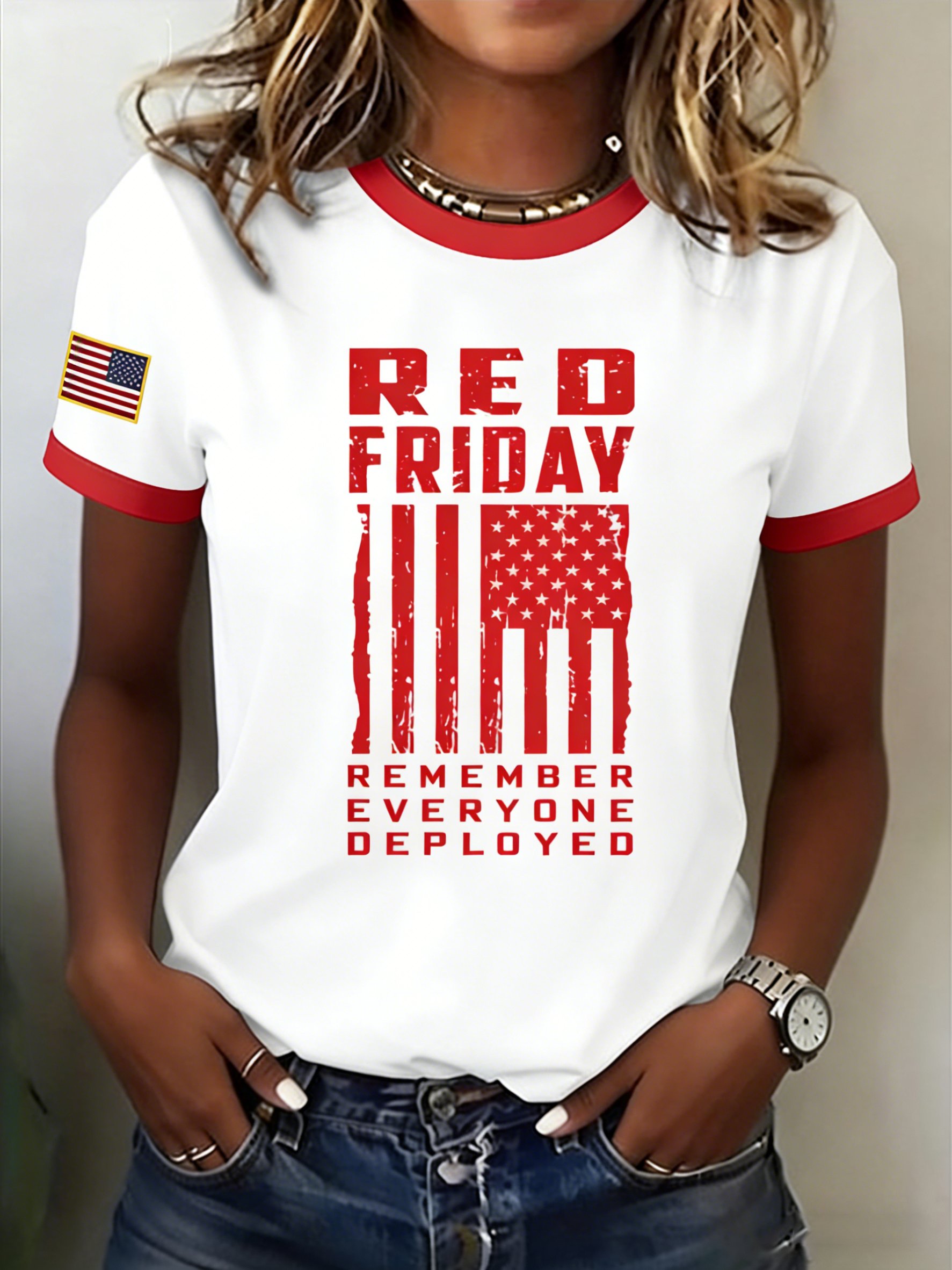 Women's Casual Red Friday Print Short-Sleeve T-Shirt