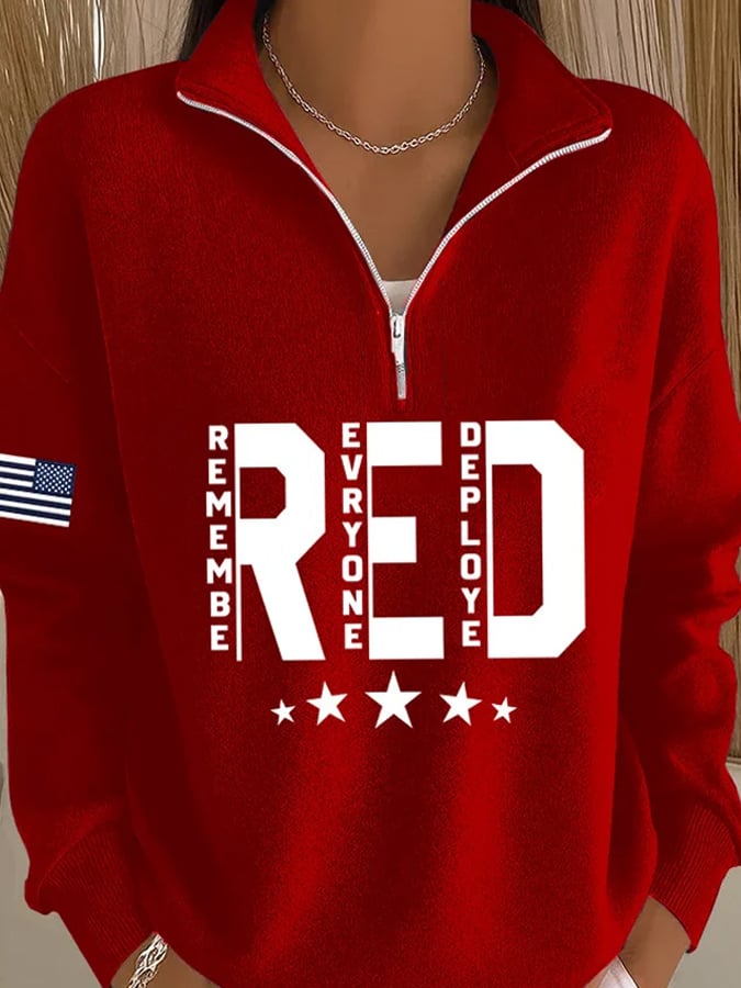 Women's Red Friday Print Casual Long Sleeve Zip Sweatshirt