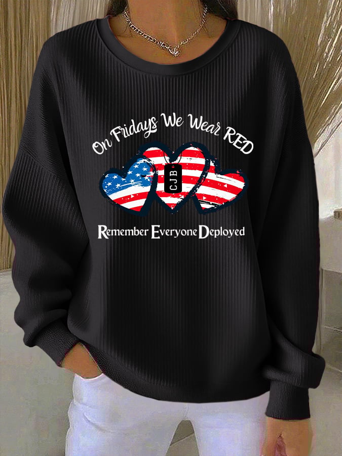 Women's On Friday We Wear Red Print Round Neck Sweatshirt