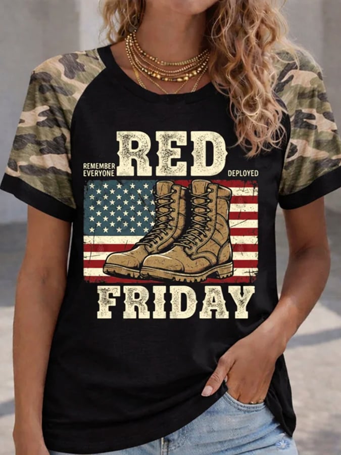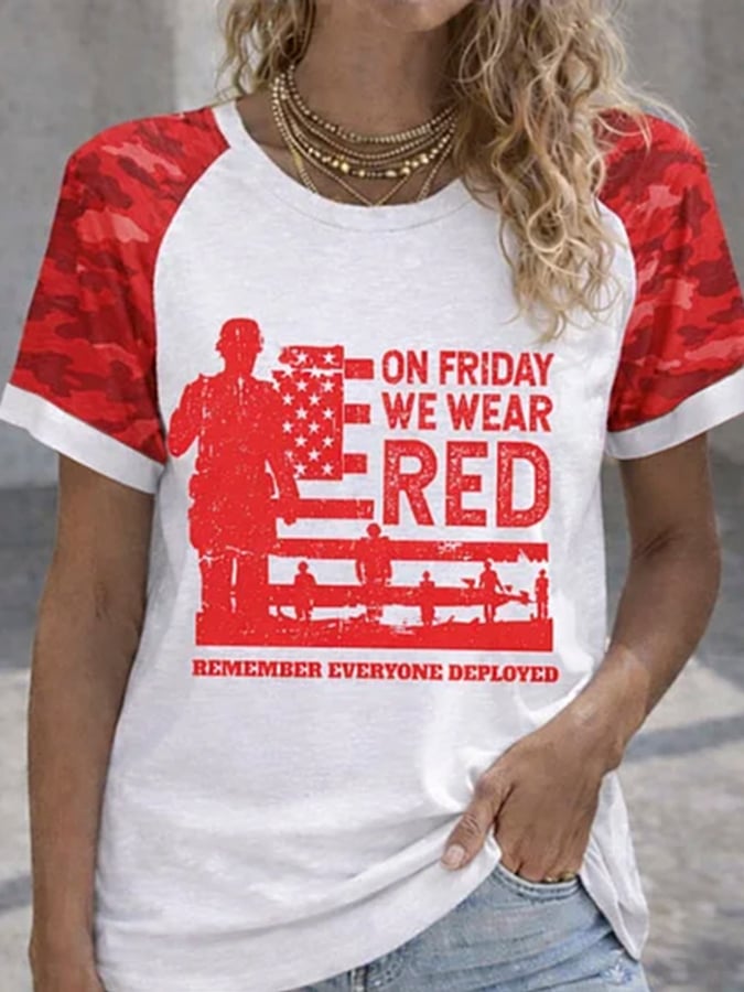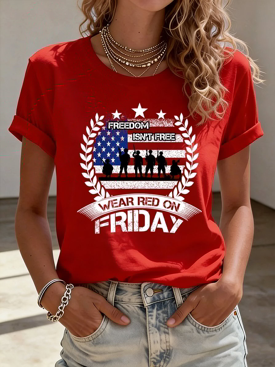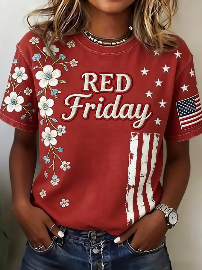 Women's Casual Red Friday Print Short-Sleeve T-Shirt