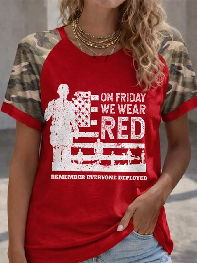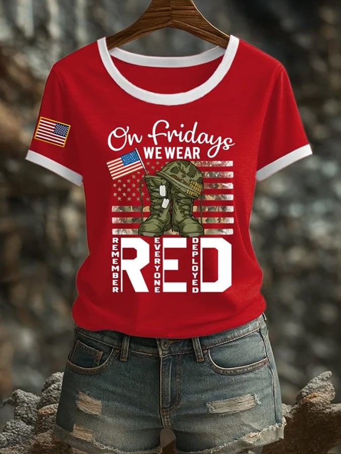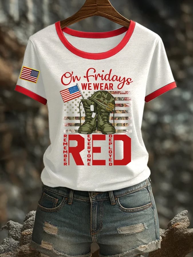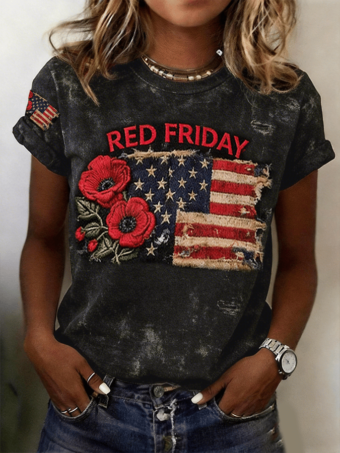 Women's Red Friday Patriotic Round Neck T-Shirt