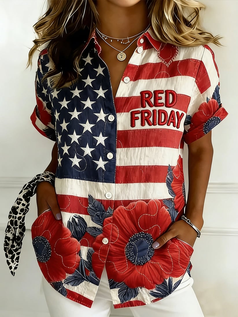Women's Casual Red Friday Print Short-Sleeve Shirt