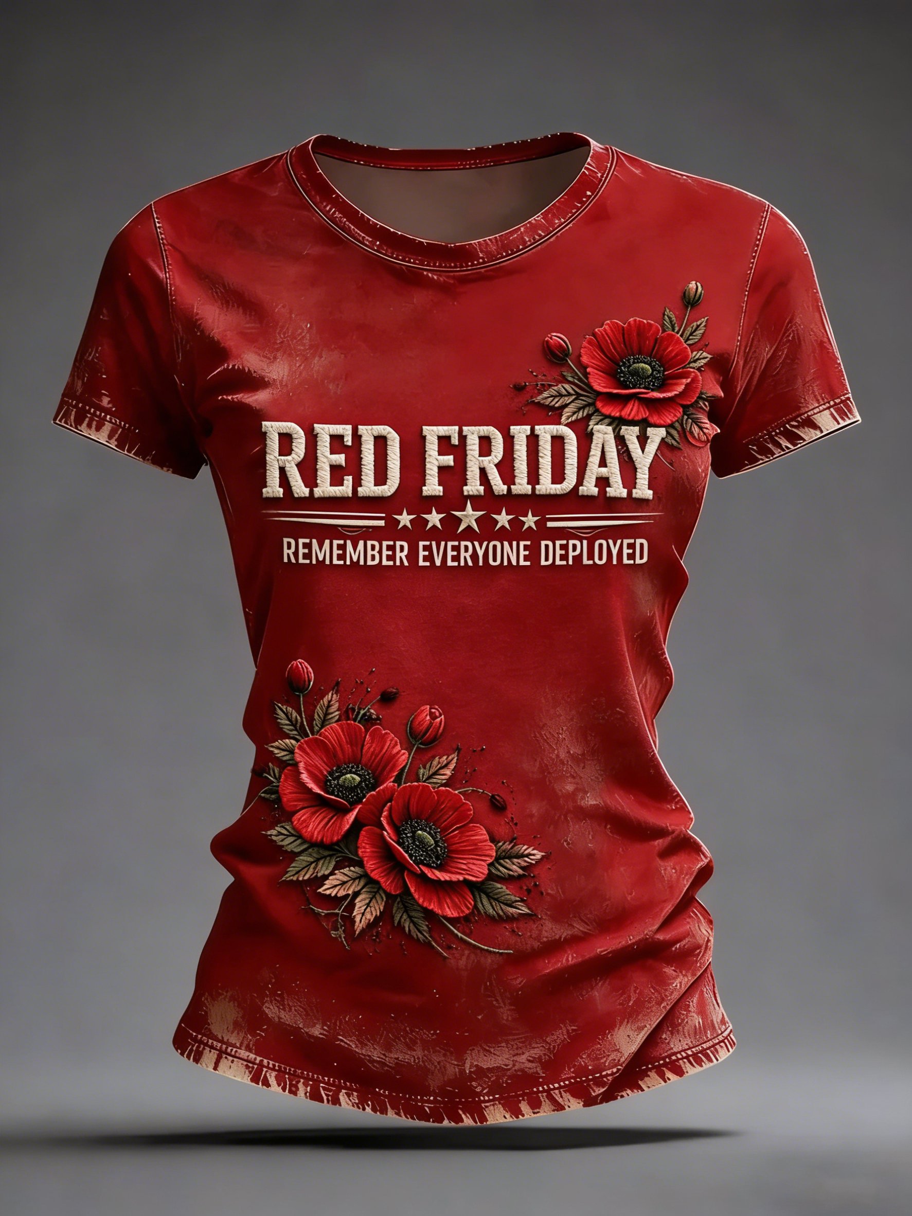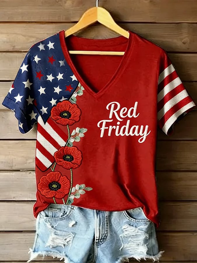 Women's Retro Poppy Red Friday Commemorative Short-Sleeve T-Shirt