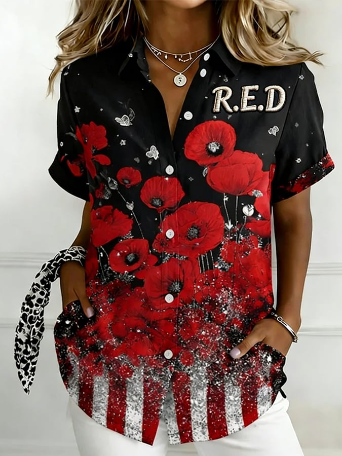 Women's Casual Red Friday Print Short-Sleeve Shirt