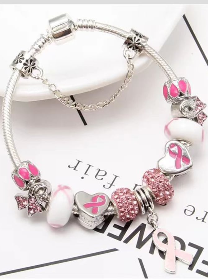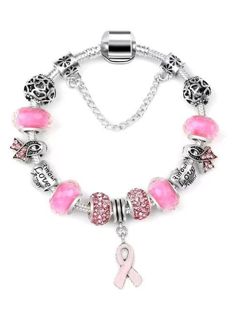 Breast Cancer Awareness Metal Chain Cat'S Eye Rose Quartz Health Bracelet