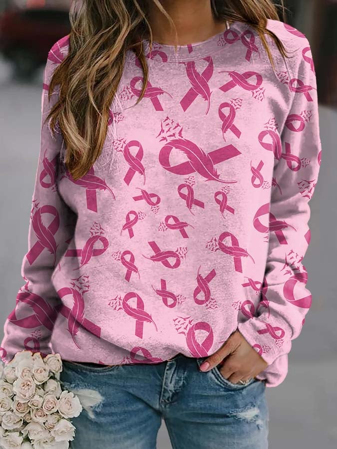 Breast Cancer Awareness Cancer Kickin' Chemo Hatin' Warrior Print Sweatshirt