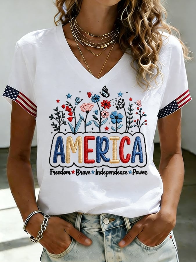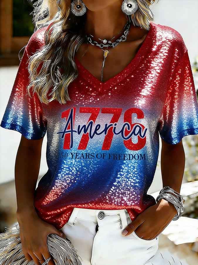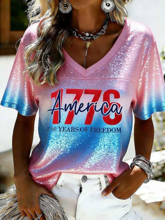 Women's America 250th Anniversary Patriotic V-Neck T-Shirt