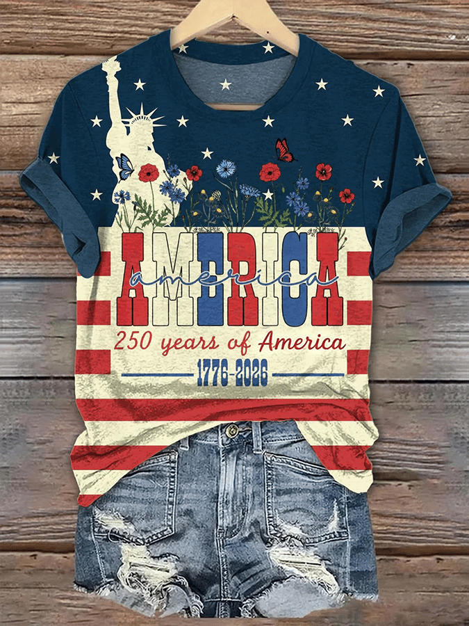 Women's 250th Anniversary Print Retro Short-Sleeve T-Shirt