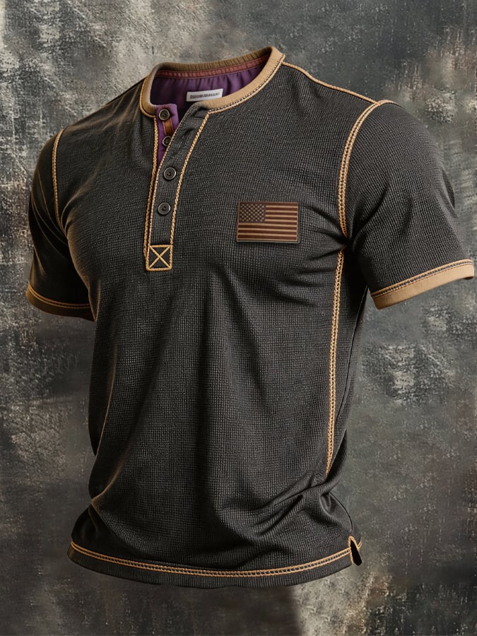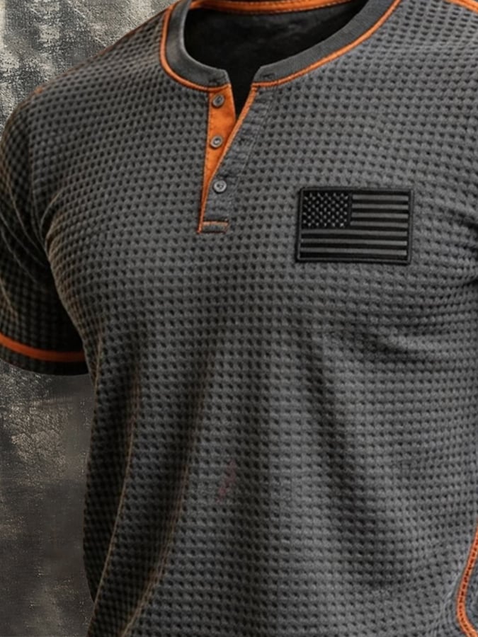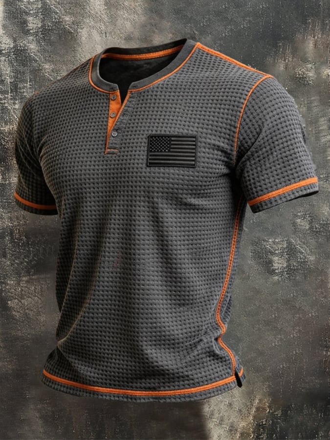 Men's Retro Color Block Waffle Patriot Henry T-Shirt