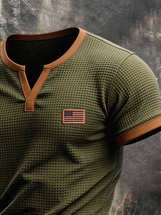 Men's Retro Patriot Patchwork Waffle T-shirt