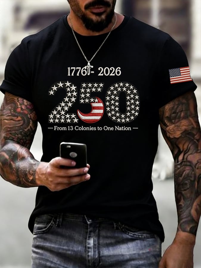 Men's 250th Anniversary Design Printed Casual T-Shirt