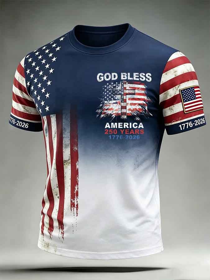 Men's 250th Anniversary National Flag Print Casual Short-Sleeved T-Shirt