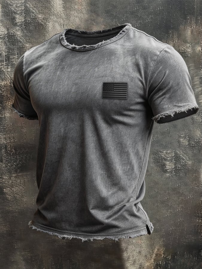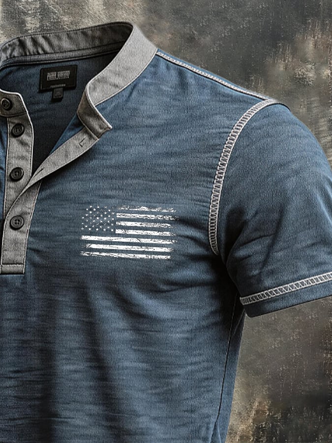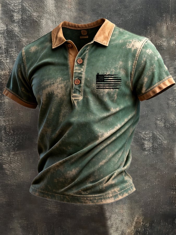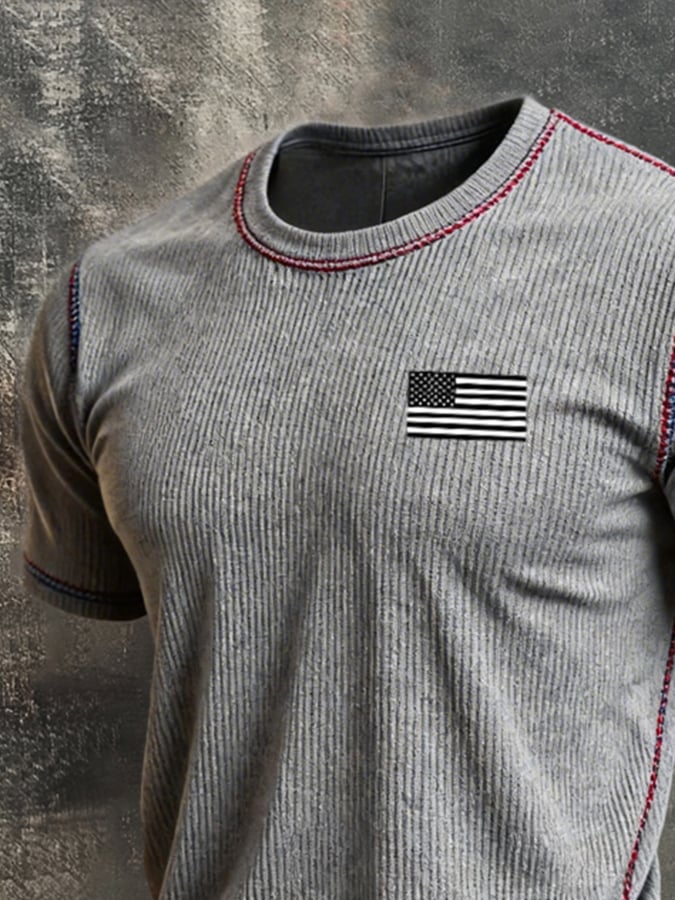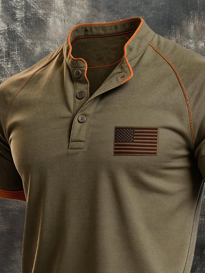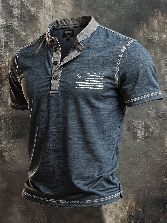 Men's Retro Color-Block "Patriot" Casual Short-Sleeve T-Shirt