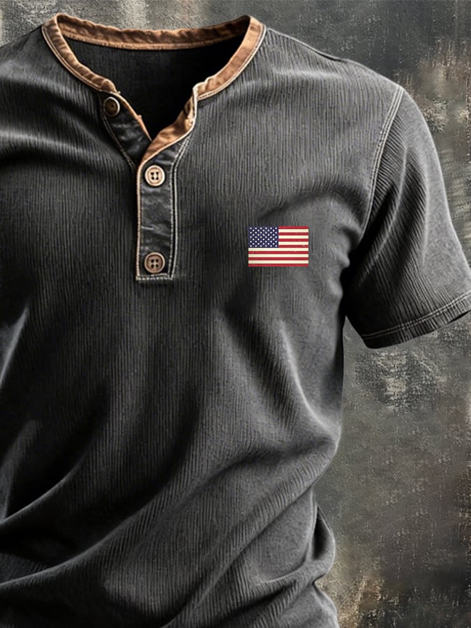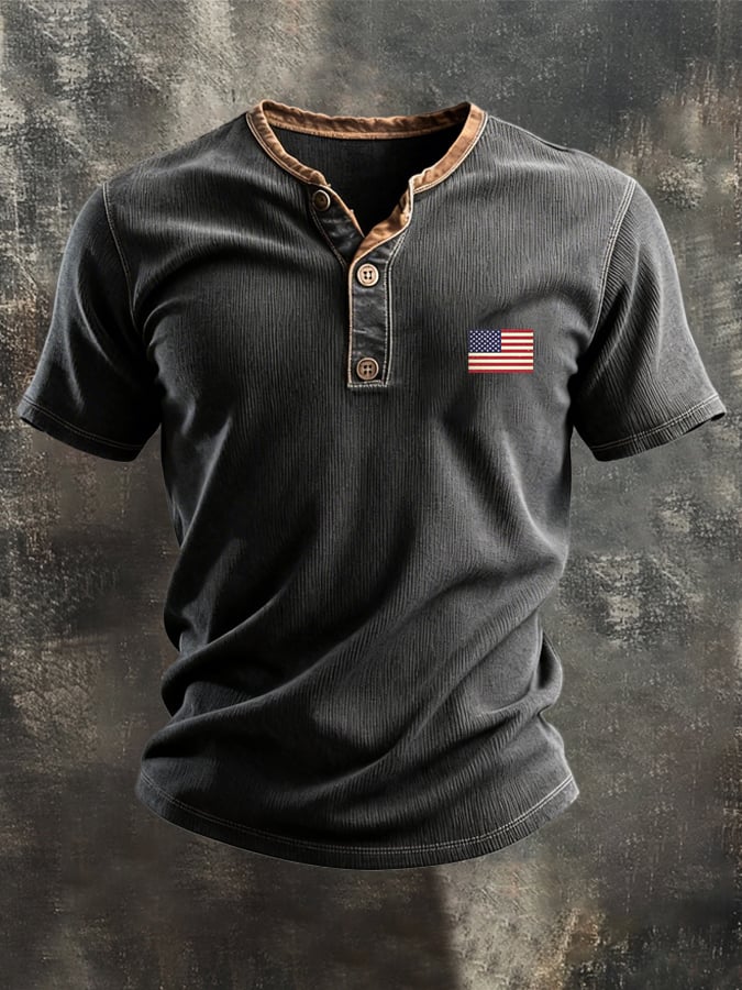 Men's Retro Color Block Waffle Patriot Henry T-Shirt