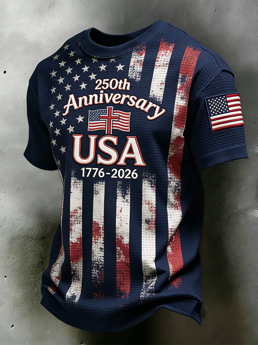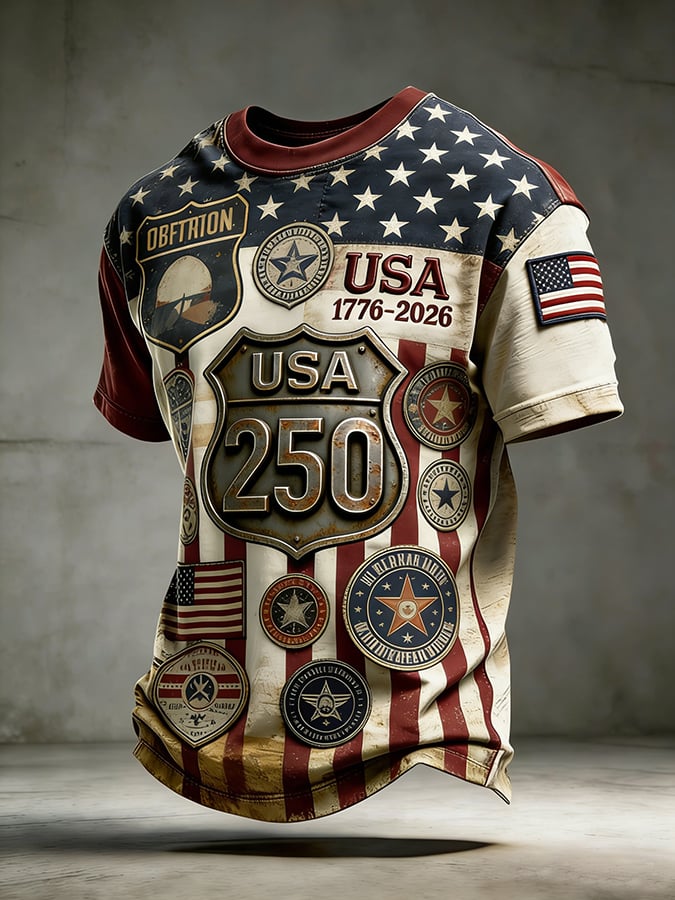 Men'S Casual Crew Neck Short-Sleeve T-Shirt With Usa 250th Anniversary Print