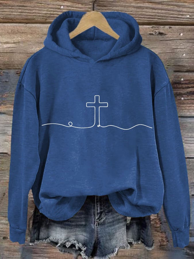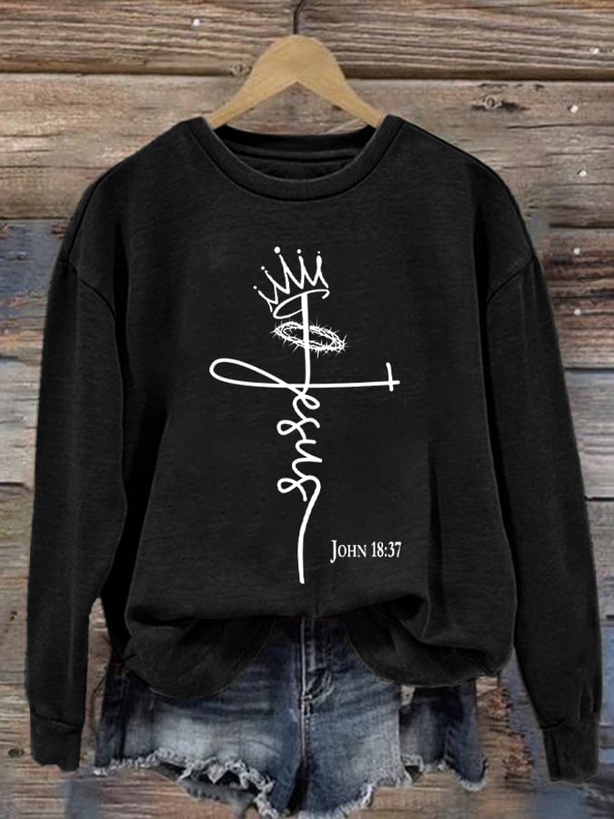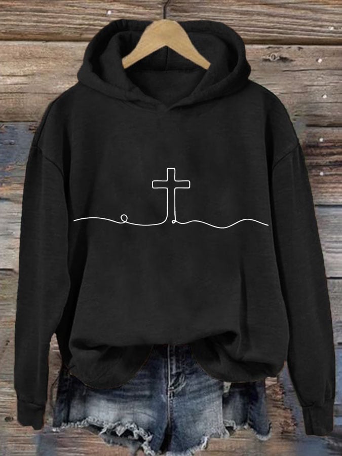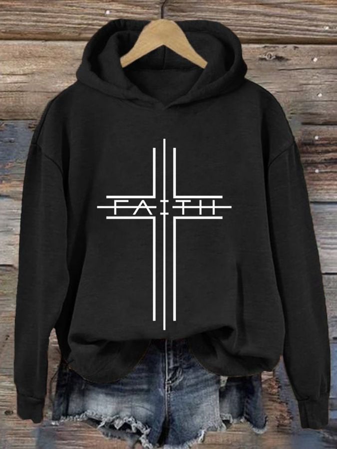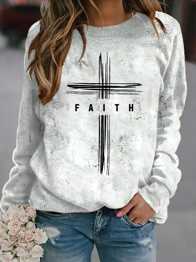 Women's Faith Cross Printed Casual Round Neck Sweatshirt