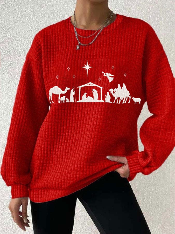 Women's Merry Chrismas Jesus Long Sleeve Printed Sweatshirt