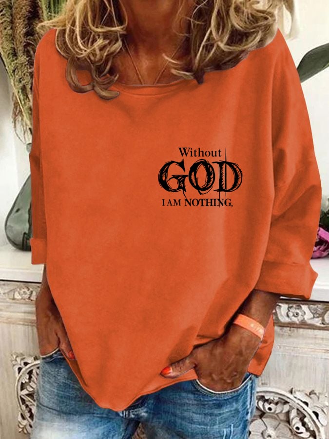 Women's Vintage Faith "Without God I Am Nothing," Printed Crew Neck Sweatshirt