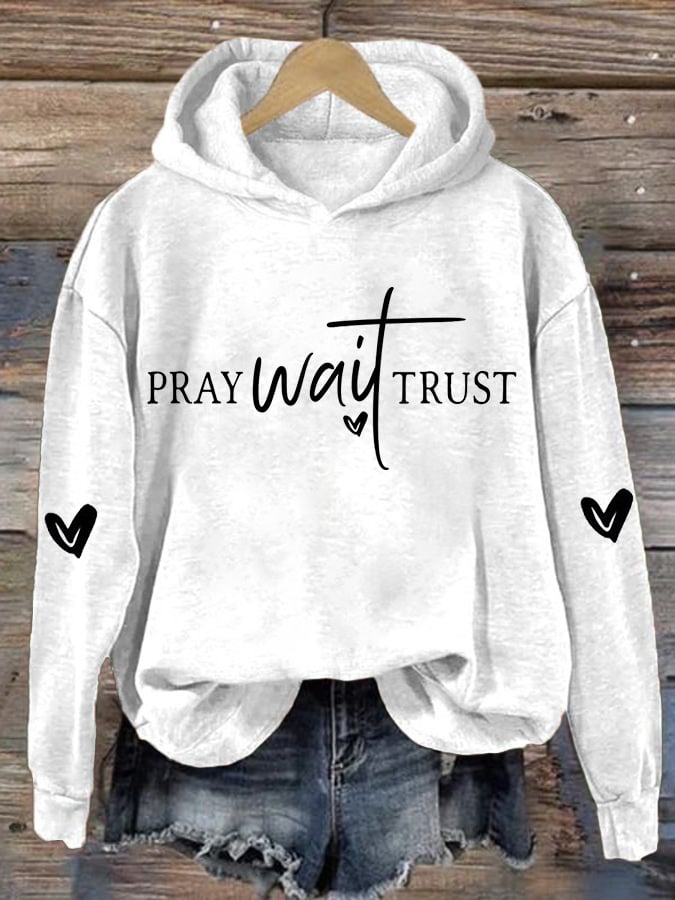 Women's Pray Wait Trust Printed Round Neck Long Sleeve Sweatshirt