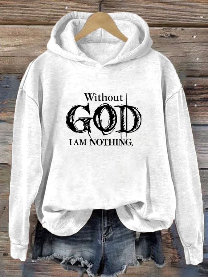 Women's Retro Faith "Without God I Am Nothing," Printed Hoodie