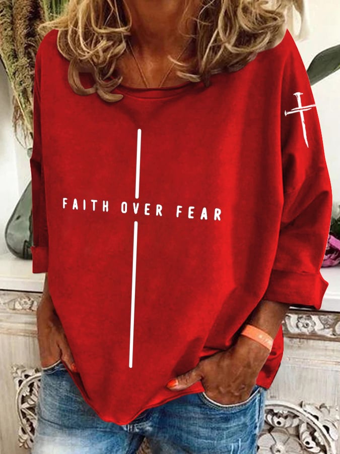 Women's Retro Faith Over Fear Printed Casual Sweatshirt