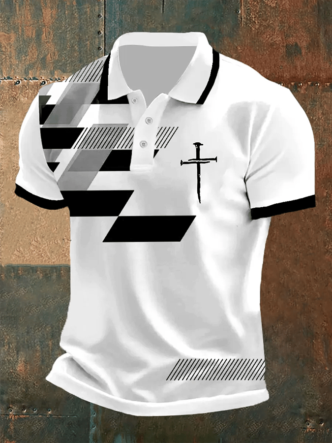 Men's Faith Cross America Flag Printed Short Sleeve POLO T-shirt