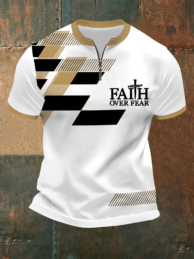 Men's Faith Over Fear Cross Faith Geometric Print Casual Zip Top