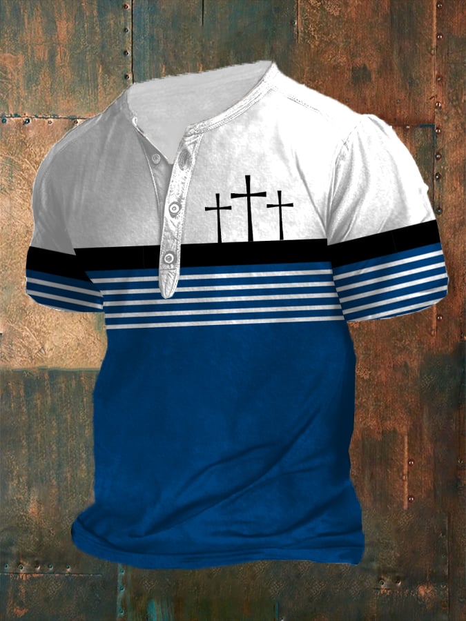 Men'S Retro Faith Casual Printed Henley Collar Top