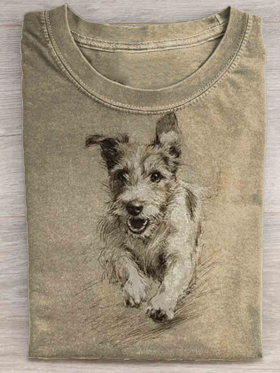 Cute Dog Art Print Casual Short Sleeve T-shirt