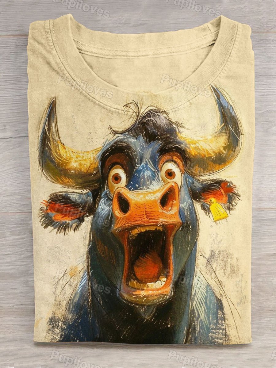 Funny Van Gogh Screaming Rabbit Art Print Cotton Casual Short Sleeve T-shirt